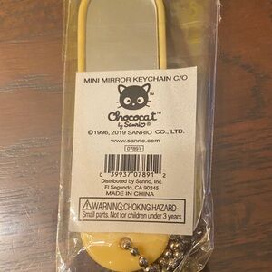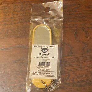 Adorable Sanrio keychain featuring Chococat and friends. Bright and fun design. With a mirror on one side of it.