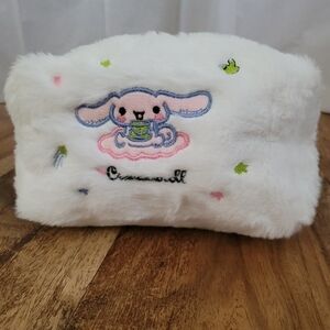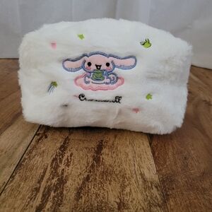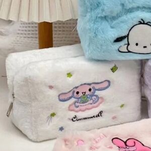 This furry plush embroidered Cinnamoroll makeup bag is 6.69" x 3.9" x 3.54".
