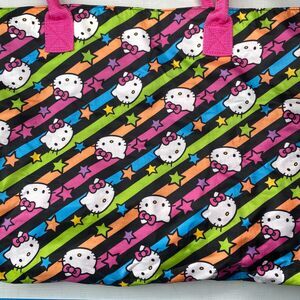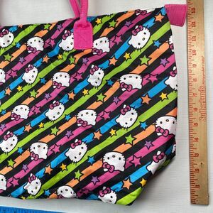 Here we have a Sanrio HELLO KITTY Large Black Rainbow Striped TOTE BAG! Pink Stars Snaps