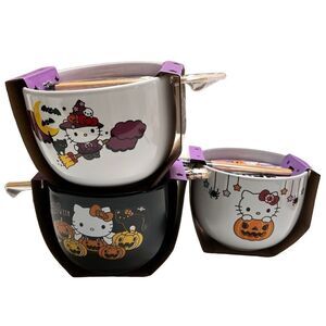 Sanrio Hello Kitty 20oz Halloween Ceramic Bowls with Chopsticks (set of 3) NEW