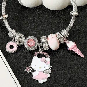 Hello Kitty Two Pieces - Chic Pink Rhinestone Necklace and Bracelet, Perfect for Casual Attire or Gifting,