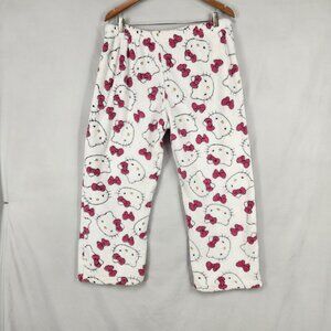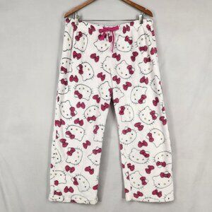 Sanrio Hello Kitty Fleece Pajama Pants Women's XL White Pink Drawstring Wide Leg