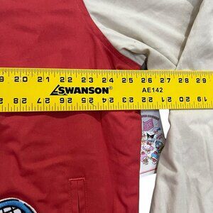 This Sanrio Hello Kitty & Friends Sports League Varsity Jacket in size 2XL features a multicolor solid design with embroidered logos. Made of cotton and polyester lining, it has a mid-length with long sleeves and snap closure. Ideal for travel, parties, or casual wear, this machine washable jacket includes pockets and is crafted from canvas fabric for a sporty and stylish look.