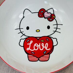 For Sale is an adorable Sanrio Hello Kitty "Love" 9 Inch Ceramic Coupe White Dinner Bowl