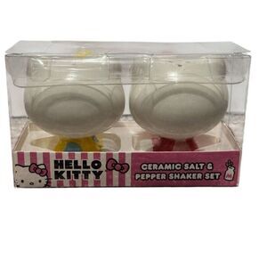 Add a touch of whimsy to your dining table with this delightful salt and pepper shakers bowl featuring the beloved Hello Kitty and Mimmy. Whether you're a collector or simply a fan of Hello Kitty, this set is a must-have addition to your kitchenware.