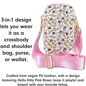 Sanrio Hello Kitty Pink Bows Crossbody Universal Phone Purse NWT