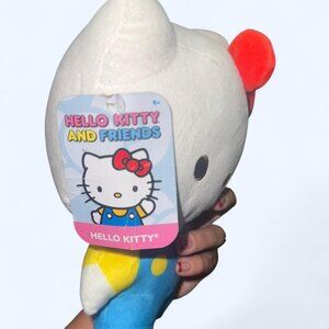 Adorable Hello Kitty plush from the official Sanrio “Hello Kitty and Friends” collection. Features her signature red bow, yellow shirt, and blue overalls.