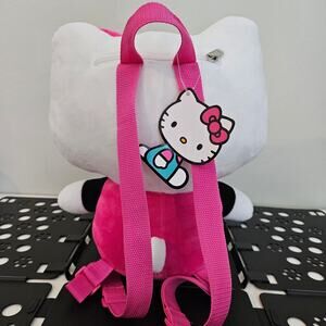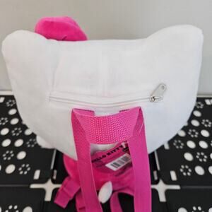 Hello Kitty by Sanrio plush doll backpack. Features adjustable straps and one zippered pocket to stash small goods.