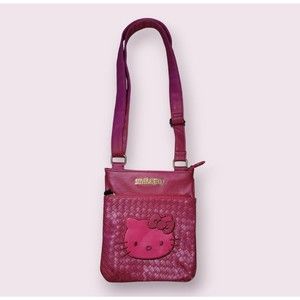 Sanrio Hello Kitty Red Weaved Crossbody Shoulder Bag Zipper Gold Hardware