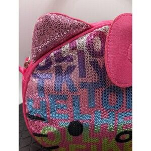This adorable Hello Kitty purse is perfect for any fan of the iconic character. The pink sequin and satin face design adds a touch of glamour to this cute bag. Measuring at 7 inches in height, 9 inches in width, and 3 inches in depth with a 9" purse drop, this purse is the perfect size for carrying your essentials. Made from a combination of fabric and canvas materials, this purse is both durable and stylish. The Hello Kitty theme and franchise make this purse a must-have for any collector.