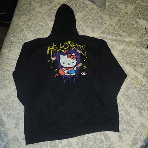 New Sanrio Hello Kitty black hoodie rock and roll with guitar & skulls