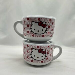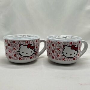 NWT Sanrio Hello Kitty bunde of soup bowls with lid. Color red and white. Has a plastic lid to keep soup warm. Can be use as a coffee mug as well. Large in size.