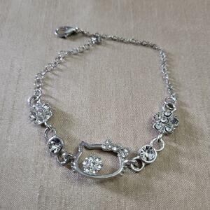 tags: Sanrio kawaii cute kidcore cat cartoon bow adult women's size adult bracelet gift present birthday valentine nwt new silver tone chain adorable y2k anime 90s accessories accessory jewelry flower floral delicate feminine