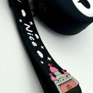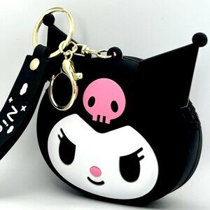 Welcome to the world of Hello Kitty & Friends with this adorable wristlet coin purse featuring Kuromi! Designed for all the Kawaii lovers out there, this Kuromi coin purse is the perfect accessory to add a touch of cuteness to everyday life. This listing is for the black/pink style - the purple style is available in a separate listing. This coin purse has several different uses; it has a handy wristlet strap for carrying, a clip to hang it on many different things and a key ring. It can be carried on its own, used as a bag charm or you can hook it on to many different things, and a keychain.
