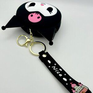 Sanrio Hello Kitty's Black Pink Kuromi Wristlet Coin Purse Keychain Bag Charm
