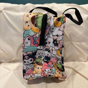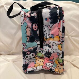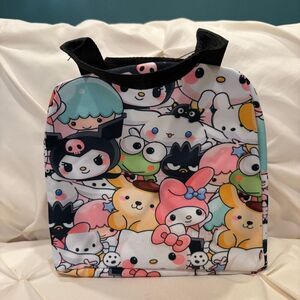 Adorable Sanrio Characters, easy to clean, very spacious, and durable. It’s insulated and can be used for lunch, car snack storage, keeping drinks cold but you could totally use it as a purse. Black handles and slip pocket outside.