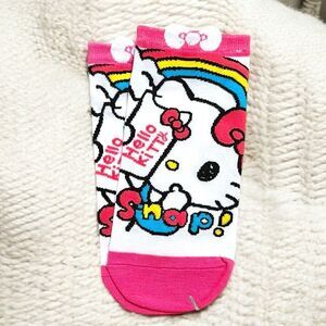 This set includes 3 pairs of women's ankle socks featuring the popular Sanrio character, Hello Kitty. The socks are size 5-8 and designed in a multicolor pattern. They are ankle-length and categorized as no-show socks, perfect for casual wear. Ideal for fans of Hello Kitty or those looking for a fun and cute addition to their sock collection.