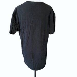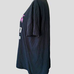 The Sanrio Hybrid T-Shirt in size Large features a graphic print of Hello Kitty racing a racecar, perfect for fans of the iconic character. Made of lightweight and breathable cotton jersey fabric, this black shirt with a crew neck and short sleeves offers a comfortable fit. Easy to care for with machine washable instructions, this regular fit shirt is ideal for both men and women who love the Hello Kitty theme and appreciate quality garments. Perfect for those who enjoy showing off their unique style with a touch of Hello Kitty charm. Refer to photos for details on size and condition as description.
