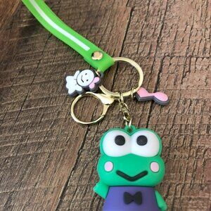 Sanrio Keroppi Green Hello Kitty Keychain with Wristband, Hook and 2 Charms