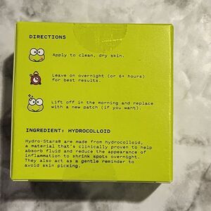 Keroppi patches are made with 100% hydrocolloid, a material that’s clinically proven to absorb fluid and help reduce the appearance of inflammation to shrink spots overnight. They also shield spots from outside bacteria and serve as a gentle reminder to avoid skin picking.