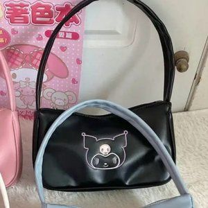 Sanrio Kuromi PVC Leather Shoulder Bag Rectangle Vintage Black & PInk Detail