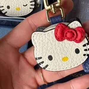 Adorable mini bag with Hello Kitty design. Features a red bow and gold zipper. Ideal for small items.