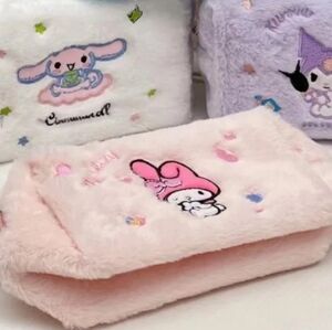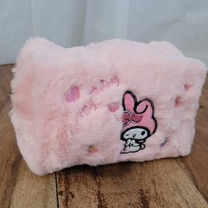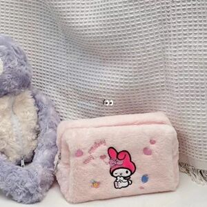 This furry plush embroidered My Melody makeup bag is 6.69" x 3.9" x 3.54".