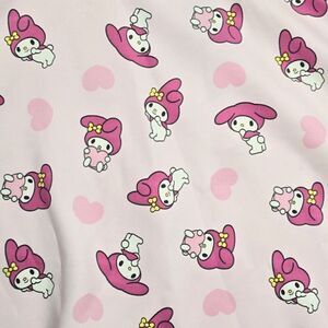 My Melody's here to make your outfit much sweeter! This scuba skirt features an allover print of My Melody in different poses, plus hearts all over. Comes with an elastic harness for a bit of edge, plus a back zipper.
