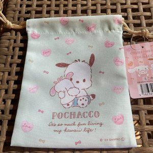 Sanrio Pochacco, Cinnamoroll Blue, Light Green Small Drawstring Bag