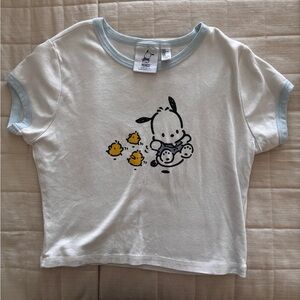 Sanrio Pochacco Ringer Baby Tee Cropped Light Blue