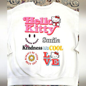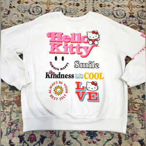 Sanrio Women's Tops White Hello Kitty Graphic Crew Neck Sweatshirt, sz Med