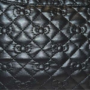 Super cute iconic black hello kitty bag! Kitty up front and personal! Quilted design with her bow in the details! I can only assume faux leather material. Has a chain and leather intertwined with10” strap drop . Chain shows age, as shown in picture lol bag is roughly 12x14” full zipper closure. Interior is very roomy! Has 2 slip ins a 1 zip up pocket. The edges are a little damaged from everyday usage. But overall it’s a great fun bag!