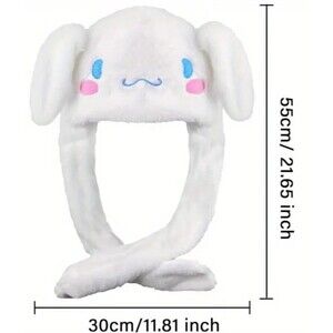 This is the cutest Sanrio Licensed plush CINAMMOROLL hat with long ears and a stitched face. It is attached to a plush scarf that where