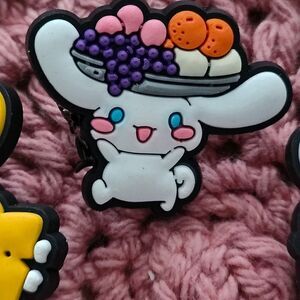 Cinnamaroll cinnamon rolls cute cutie kawaii sanrio Kuromi hello kitty snow day fruit basket punk Y2K trendy pompom unisex decor decoration croc charms jibitz pumpkin chubby chibi anime rainy day rain coat