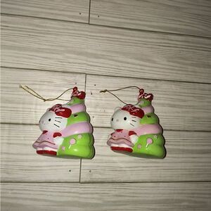 Sanrio Hello Kitty Christmas Tree Ornament 3.5” Pink Red Green 2005 Set Of 2. They have wear from age and storage. Sold as is.