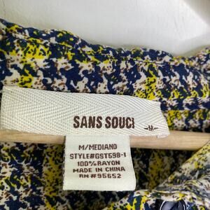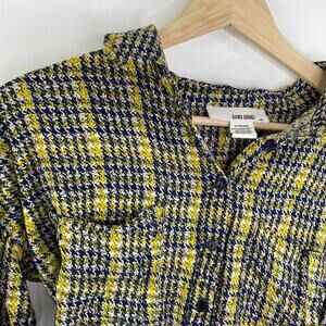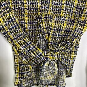 Sans Souci Blue Yellow Houndstooth Button Front Shirt Women's Size Medium M