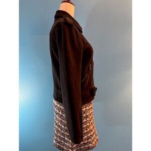 Sans Souci Faux Suede Moto Jacket Attached Belt Zipper Close & Pockets S