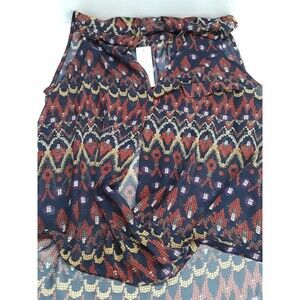 Sans Souci High Low Wrapped Sheer Top Blouse Geometric Red Blue L New NWT