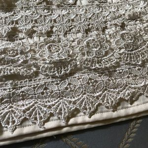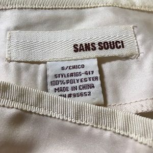 Absolutely beautiful details. Soft satin like base with quality lace appliqués. Above the knee, yet modest. Champagne. Like brand new. Size small, no flaws.
