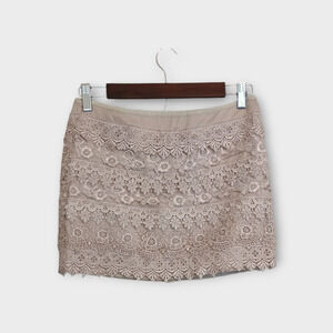 Sans Souci Skirt Womens Small Beige Cream Layered Eyelet Crochet Coquette Mini