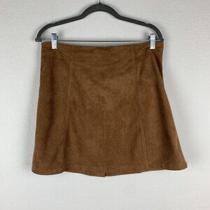Sans Souci Women's L Faux Suede Camel Tan Button Front A Line Skirt Artsy