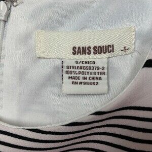 Sans Souci Women's Top Small Striped Multicolor Blue White Black Sleeveless