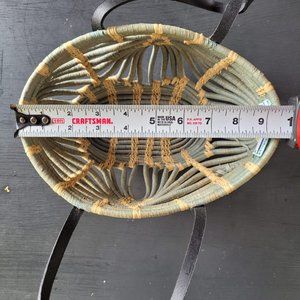 Sans-Arcidet Collection Designer Turquoise and Tan Raffia Woven Basket Bag