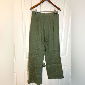 Sans Souci Wide Leg Linen Pants Olive Green Size L