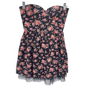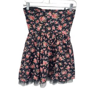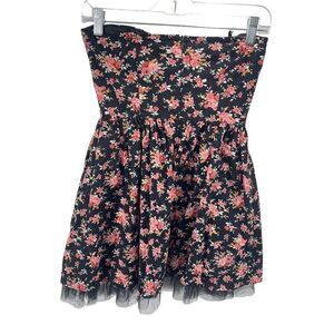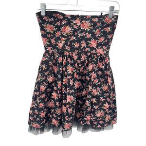Sans Souci Womens Floral Dress Cotton Strapless Fit & Flare Mini Black Red