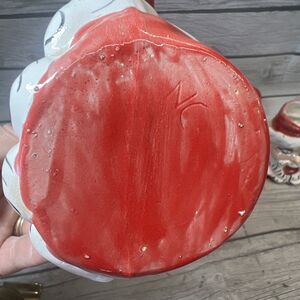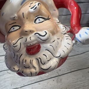 This is a vintage ceramic Santa 4 mugs cups set, handmade in 1976 and 1977 in the United States. The set features Santa Claus' head as the shape, and is multicolored. It is suitable for use as a cup, and is a part of the Santa Claus character family. The set includes a total of four pieces, and is an original, late 20th-century collectible.