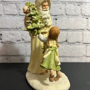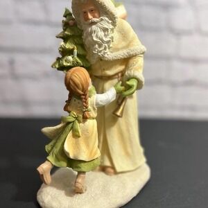 Pre-loved and in excellent condition. Santa and Girl White Sparkle Father Christmas St Nicholas. Polyresin.