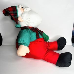 Santa And Mrs Claus Puffy Parachute Plush Stuffed Animal Large 24" great preowned condition very small hole in the back of Santas hat red spot under neck looks like it is string under the white fabric about 24" laying down - designed to be sitting up - sits at about 16.5" high 13 1 8.6