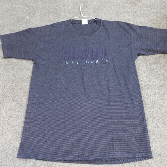 Santa Barbara California T-shirt Medium Blue Striped Vintage Embroidered Cotton