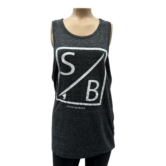 Tags: Santa Barbara tank, sleeveless top, women's casual wear, logo tank top, charcoal gray tank, lightweight tank, SB logo, summer outfit, scoop neck tank, relaxed fit top, breathable top, soft fabric tank, casual sleeveless